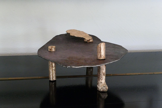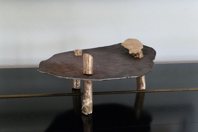 This handmade art piece is made out of Bronze, Concrete and Metal